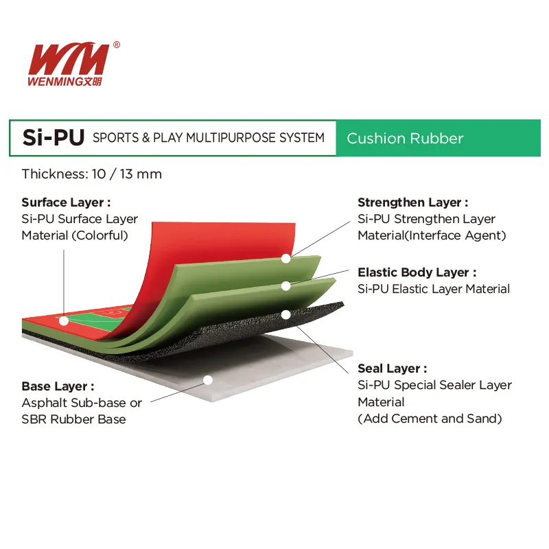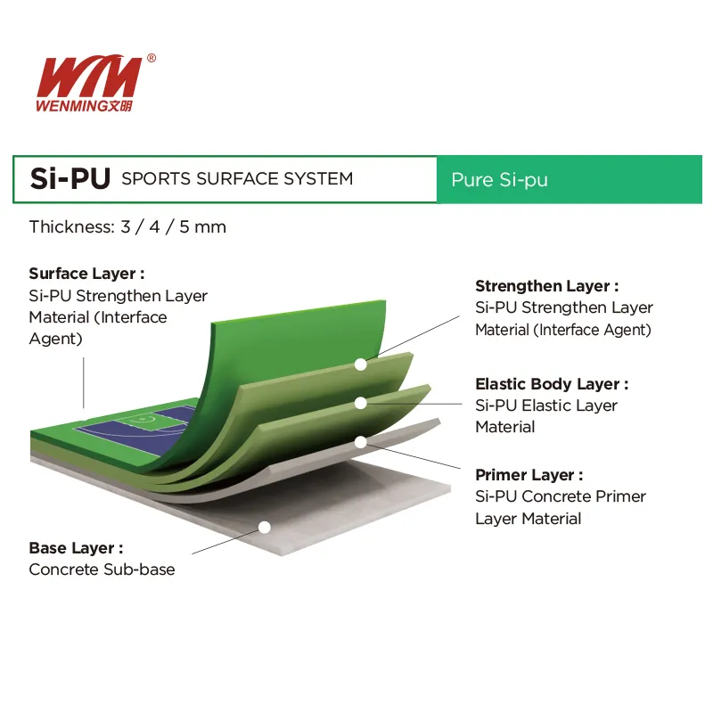 SI-PU жабыны - кәсіби және мектеп жүгіру жолдарына арналған заманауи полиуретанды жабын. Ол жоғары серпімділікке, шуды сіңіруге және тозуға төзімділікке ие. Жыл бойы ашық ауада қолдануға жарамды, жарылуға және түсінің түсуіне төзімді.